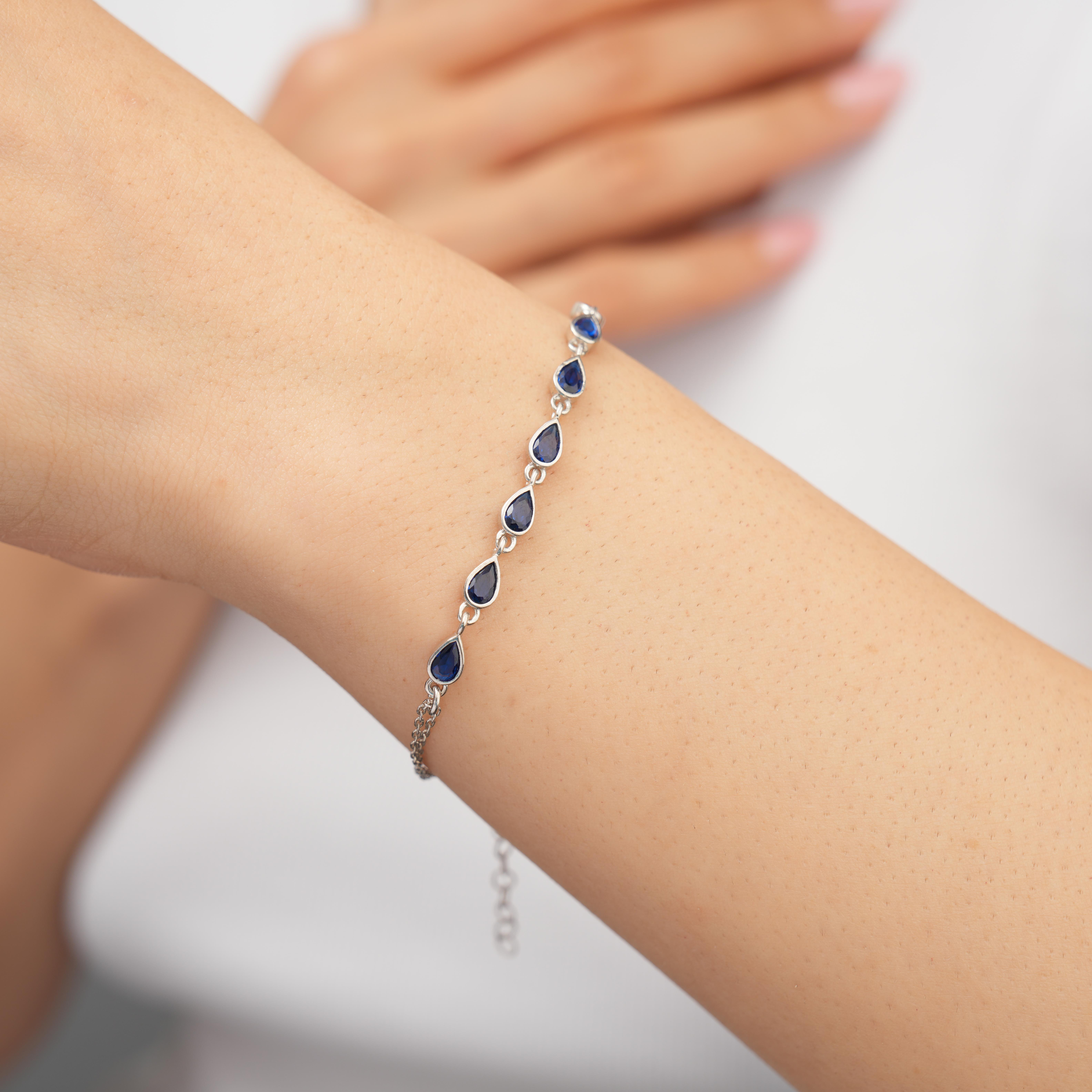 925 AYAR RODYUM KAPLAMA DAMLA SAFİR TAŞLI GÜMÜŞ BİLEKLİK