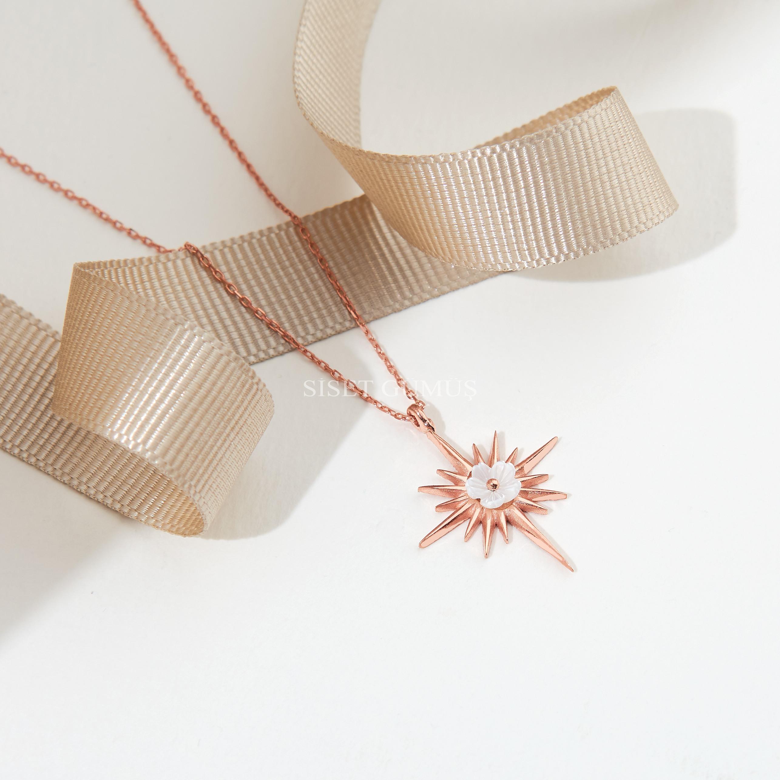 Manolya çiçekli kutup yıldızı kolyemiz 925 ayar gümüşten yapılmıştır. Rose kaplamadır renk atma kararma yapmaz. Üzerinde renkli zirkon taş kullanılmıştır. Zincir uzunluğu 43 cm dir. 1 yıl garanti kapsamındadır .Hediye kutusu ile gönderilmektedir.