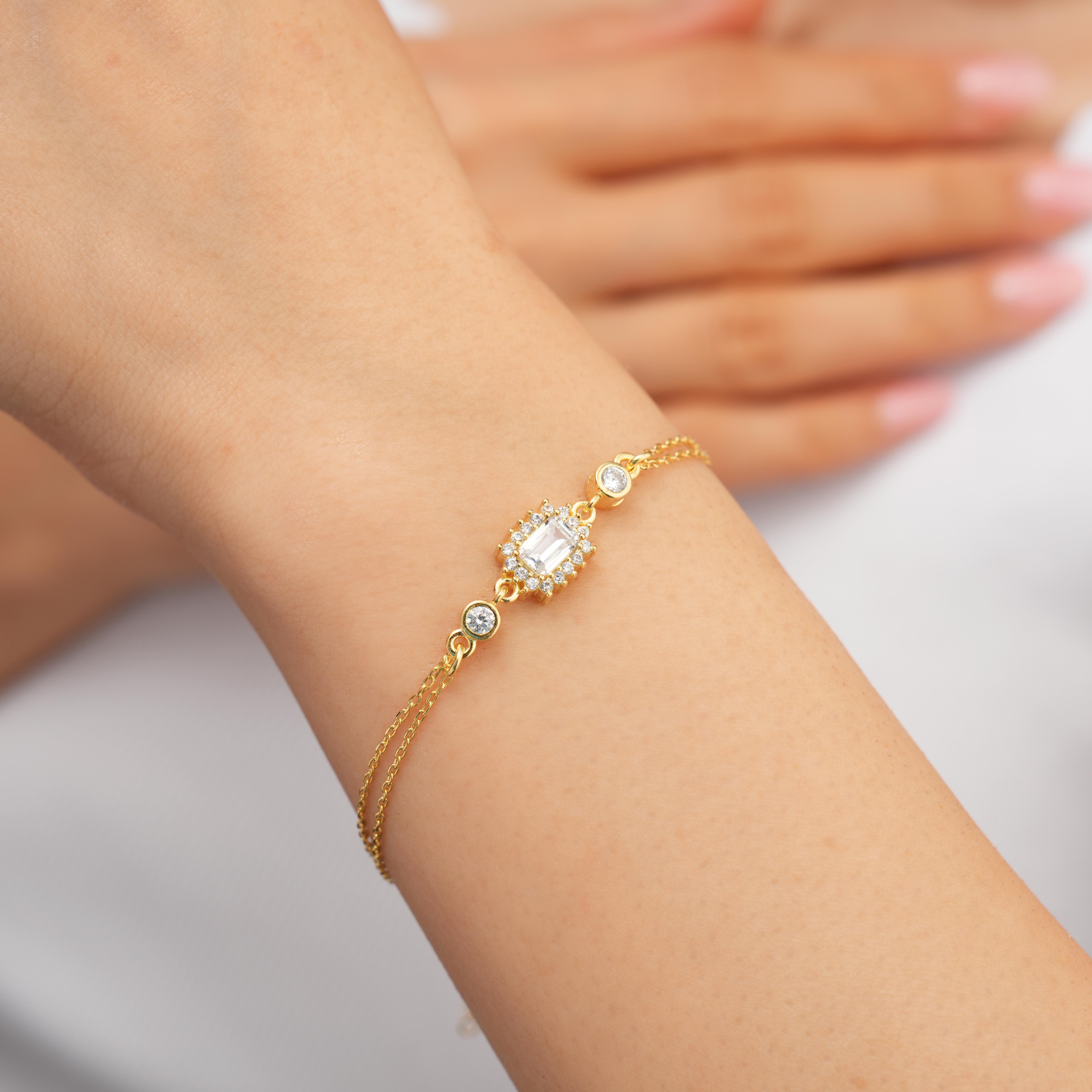 925 AYAR SARI ALTIN KAPLAMA BAGET TAŞLI GÜMÜŞ BİLEKLİK