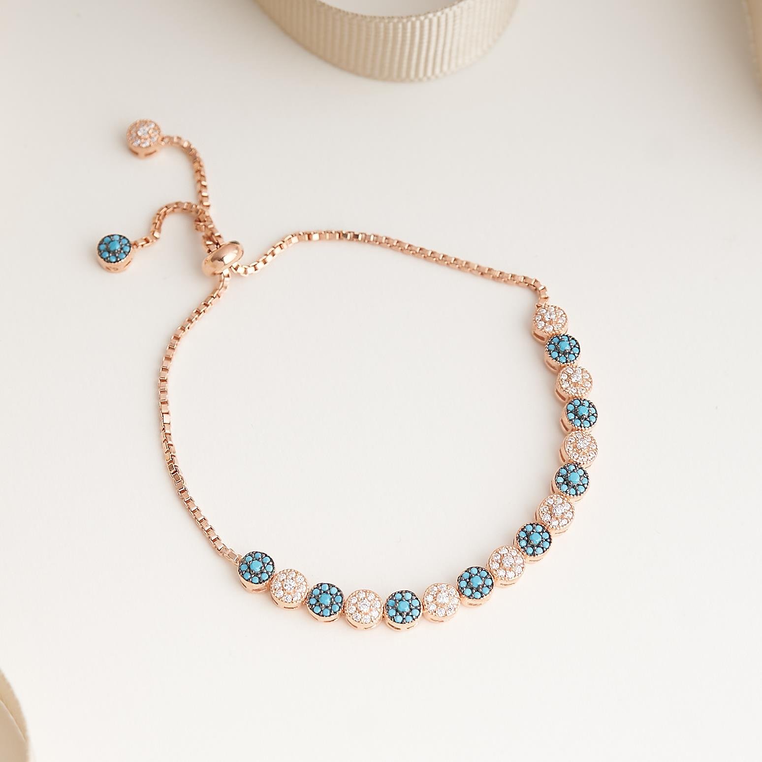 Turkuvaz taşlı asansörlü bilekliğimiz 925 ayar gümüşten yapılmıştır. Rose  kaplamadır renk atma kararma yapmaz. Üzerinde zirkon ve turkuvaz  taş kullanılmıştır.  1 yıl garanti kapsamındadır. Asansörlü olduğundan her bilek için uygundur Hediye kutusu ile  gönderilmektedir.