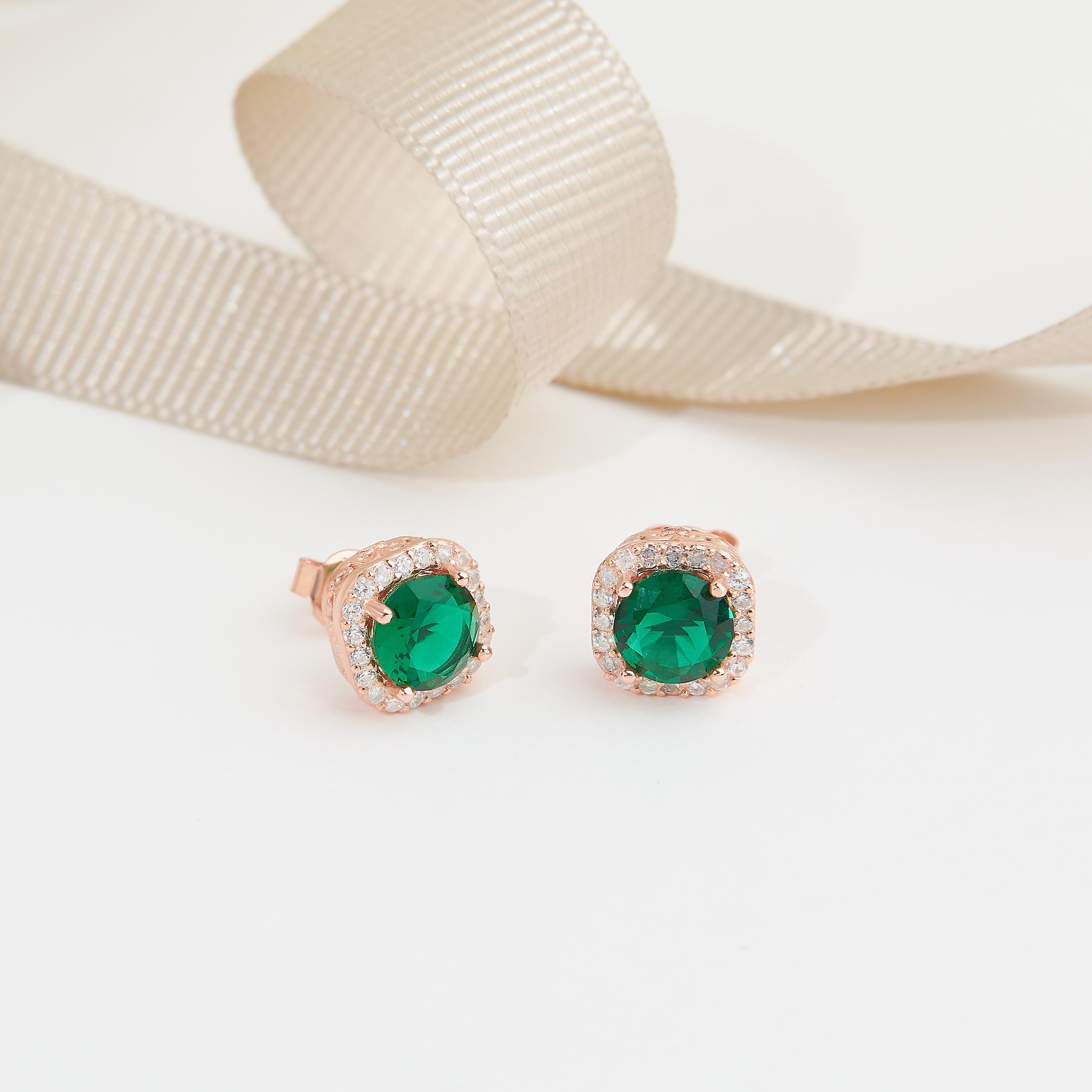 Zümrüt   taşlı  tektaş  küpemiz 925 ayar gümüşten yapılmıştır. Rose kaplamadır renk atma kararma yapmaz. 3.60  gram ağırlığındadır. Günlük ve abiye kullanıma uygundur. 1 yıl garanti kapsamındadır. Hediye kutusu ve çantası ile gönderilmektedir.